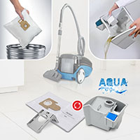 Уникальный водяной фильтр AQUAFILTER c инновационной технологией подавления пыли Wet-JET удерживает 99,99% мельчайшей пыли и 100% пыльцы.